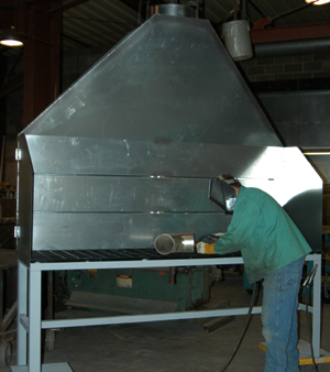 Slotted Fume Hoods are available in a vast array of sizes With numerous accessories. Side skirts are a common addition. The hood may also be connected to a welding table. Typical hood depth is 6" for standard models. SFH Models include 34", 46", and 58" wide. Air patterns pull harmful fumes and particulate from breathing zone. Table or wall mount available in confined space. Options include: table, side skirts, and adjustable slot design.