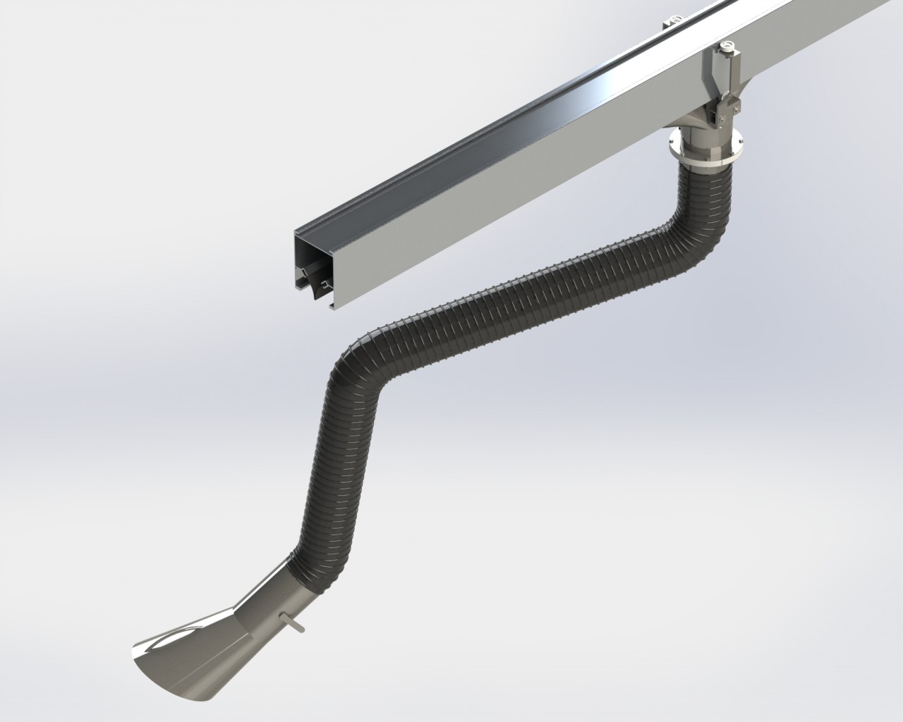 Aluminium extraction rail with sealing lips and mounting profiles to carry moveable extraction trolleys. The extraction rail can be used with fully flexible hose systems. The Technorail modular concept caters for a wide range of applications and workplace environments. Straight-forward assembly, robust design with low pressure losses. Specification includes all necessary seals and clips.