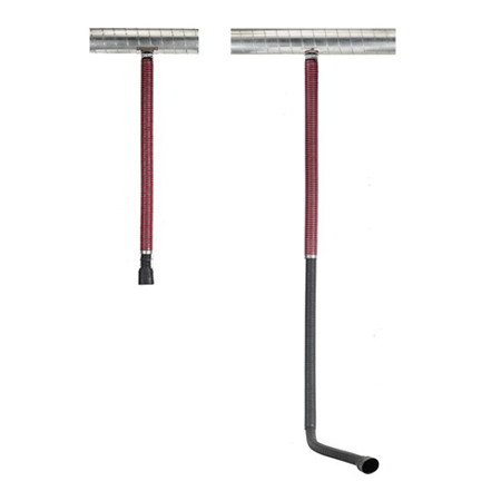 The upper section of the Retractable Telescoping System features high a visibility hose, while the middle section has a smooth bore hose, and the lower section features heavy-duty no crush neoprene hose. Adjustable stainless steel duct saddle standard.