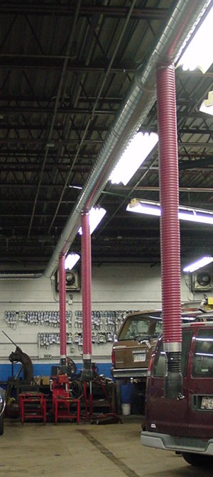 The most economical answer for overhead exhaust extraction is the Retractable Telescoping System.